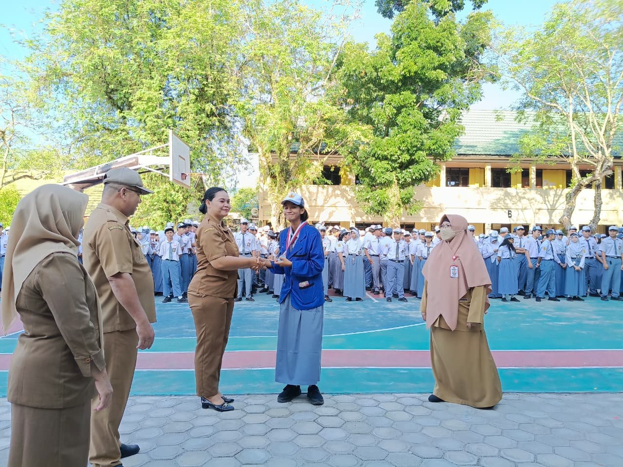 Penyerahan Piala dan Penghargaan atas prestasi murid Kepada Pihak Sekolah diterima oleh Pembina Upacara Ibu Ni Wayan Warni, S.Sos., M. PdH pada Upacara Senin, 9 Pebruari 2026.